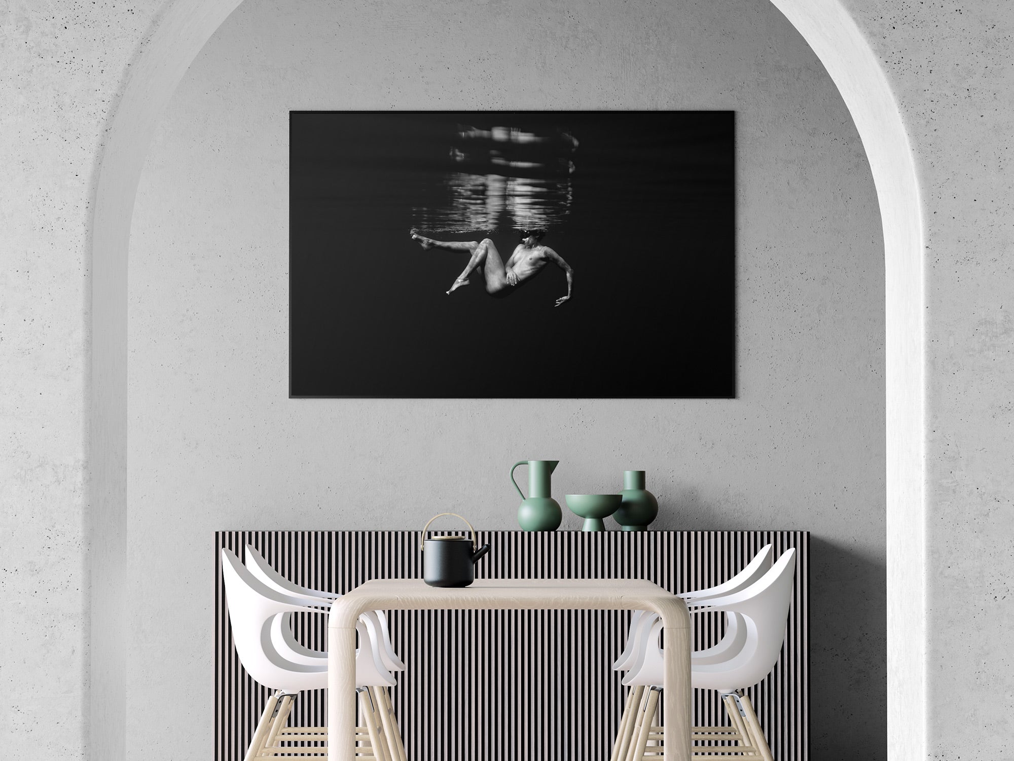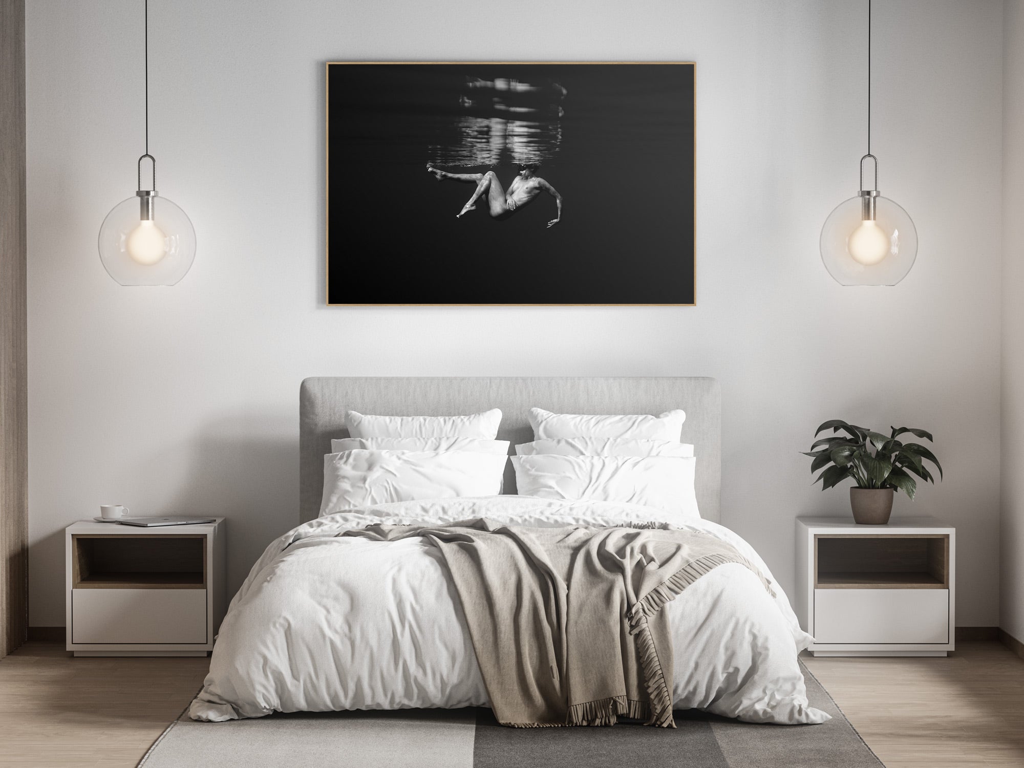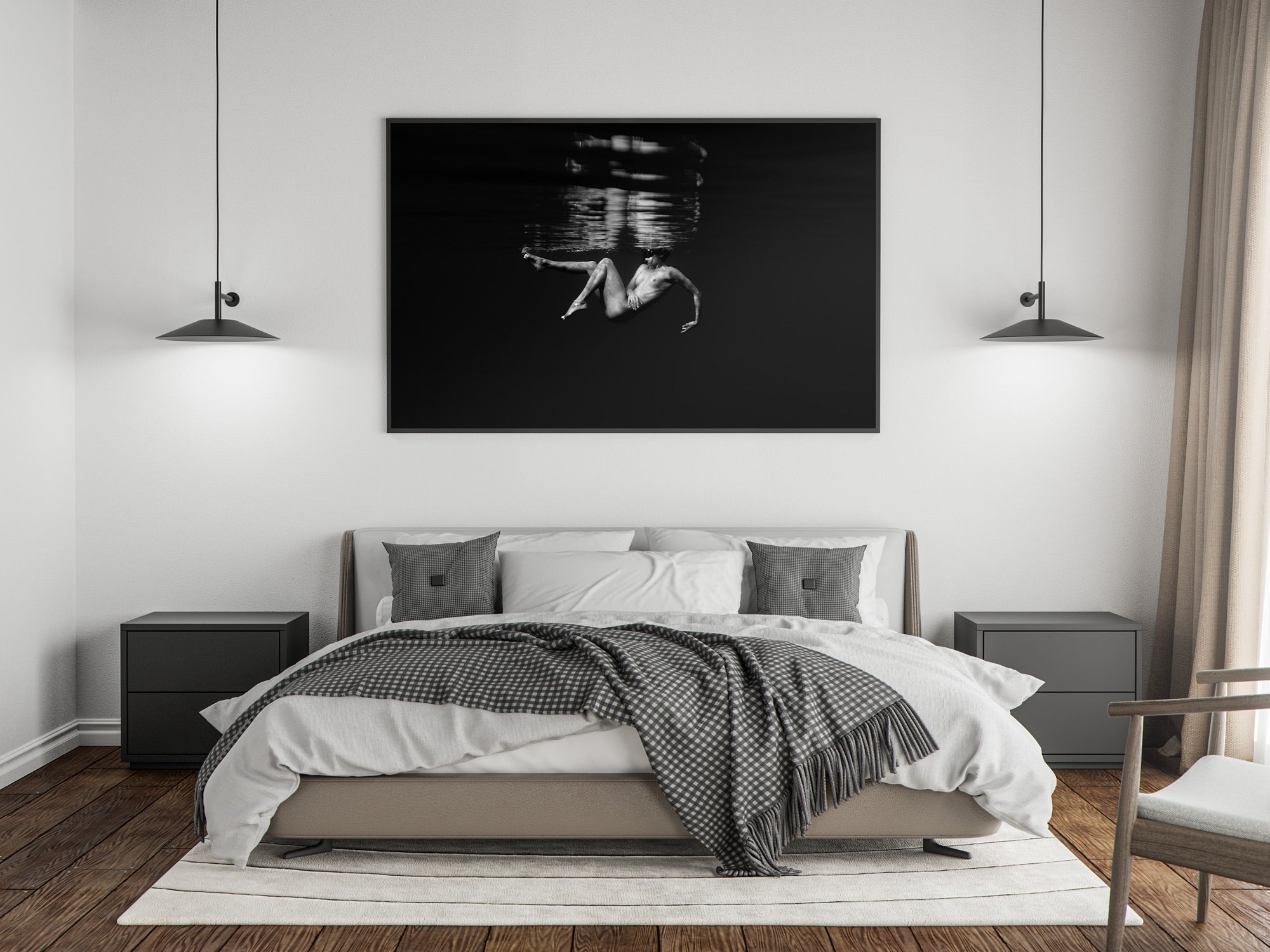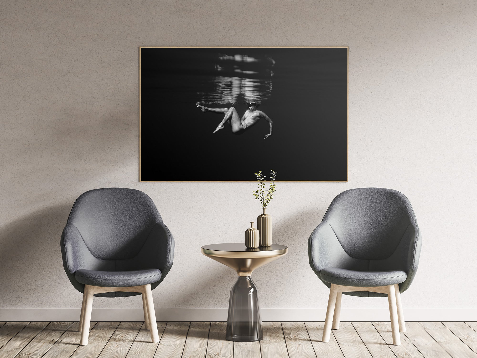 Aluminio negro, madera de roble y sin marco