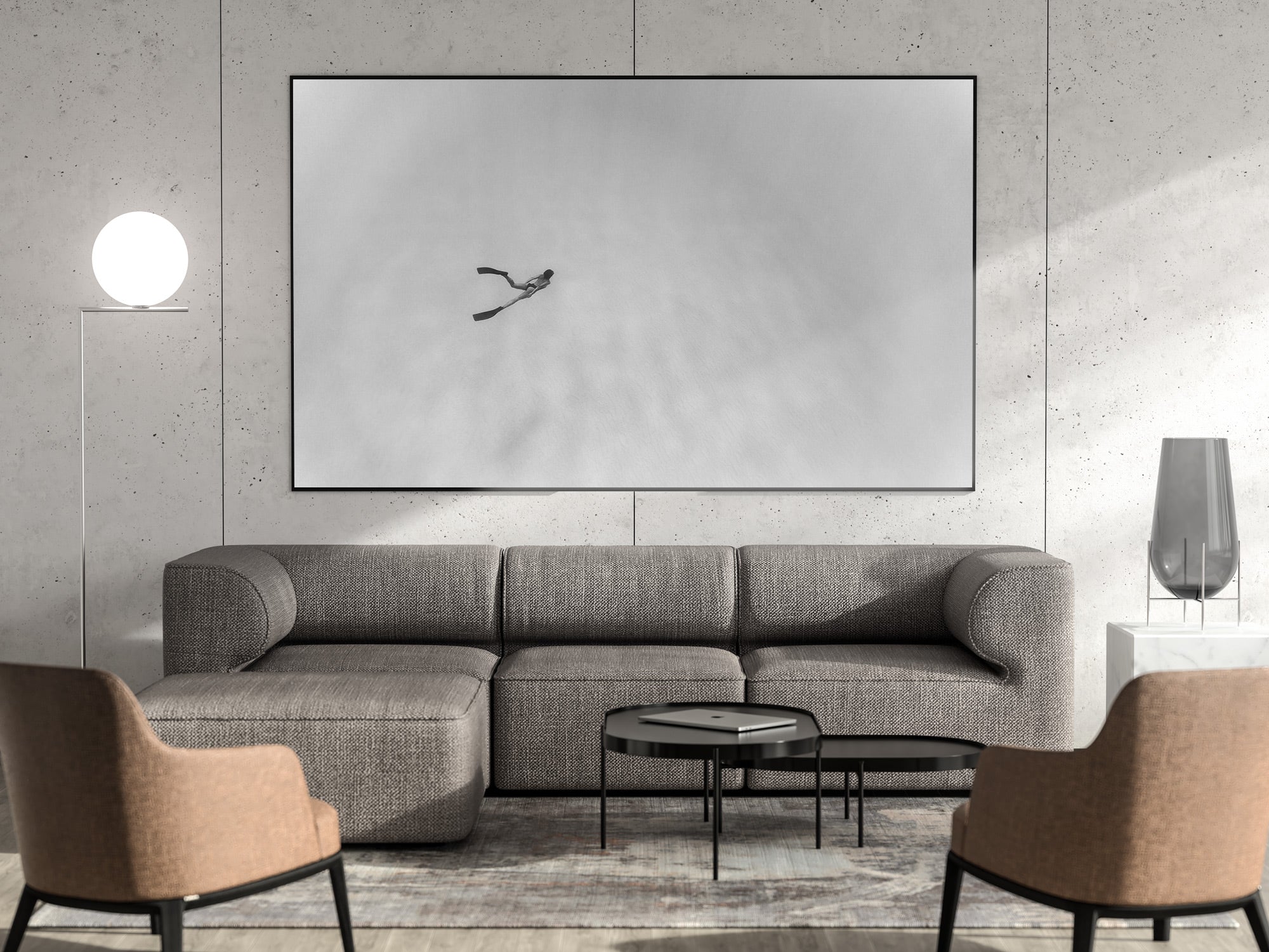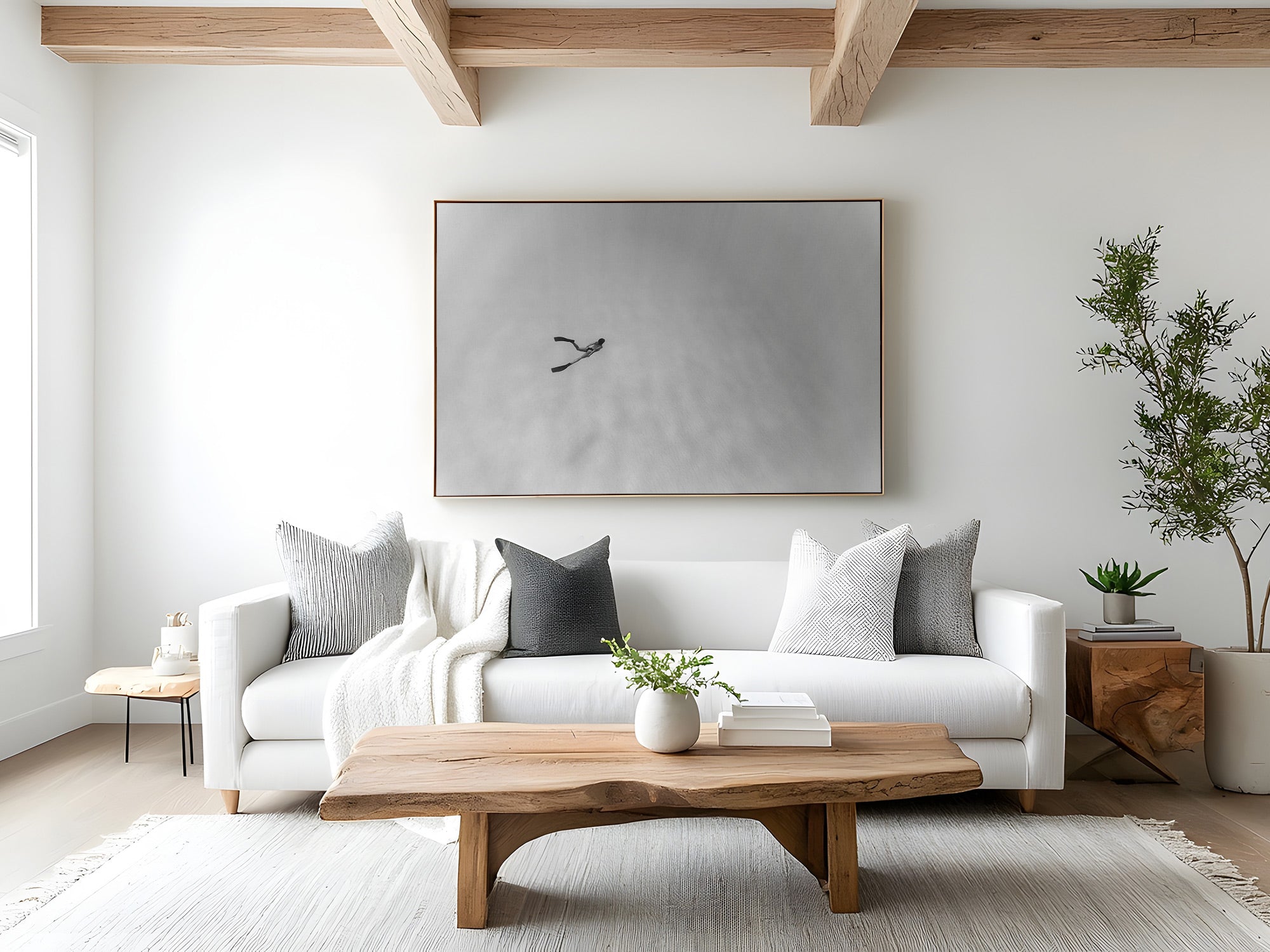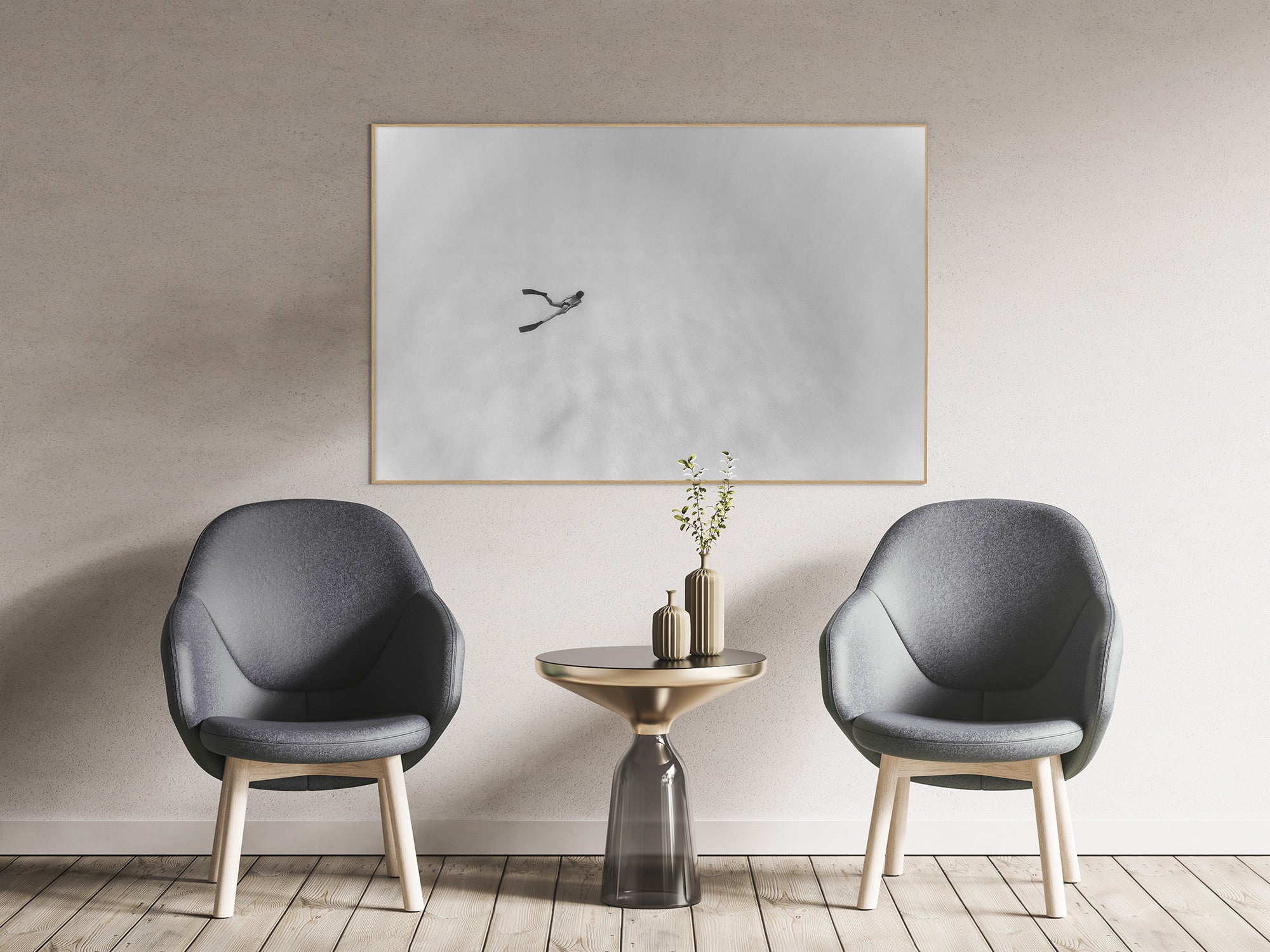 Aluminio negro, madera de roble y sin marco