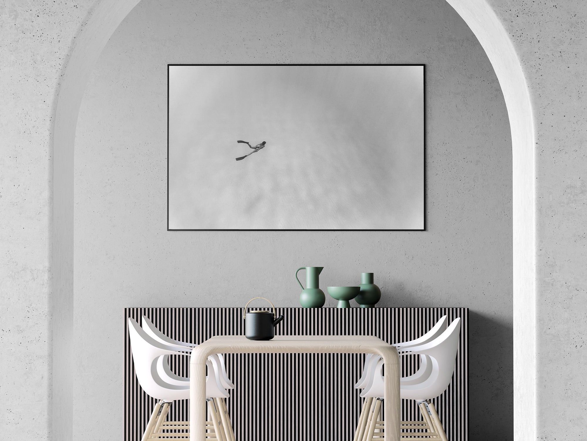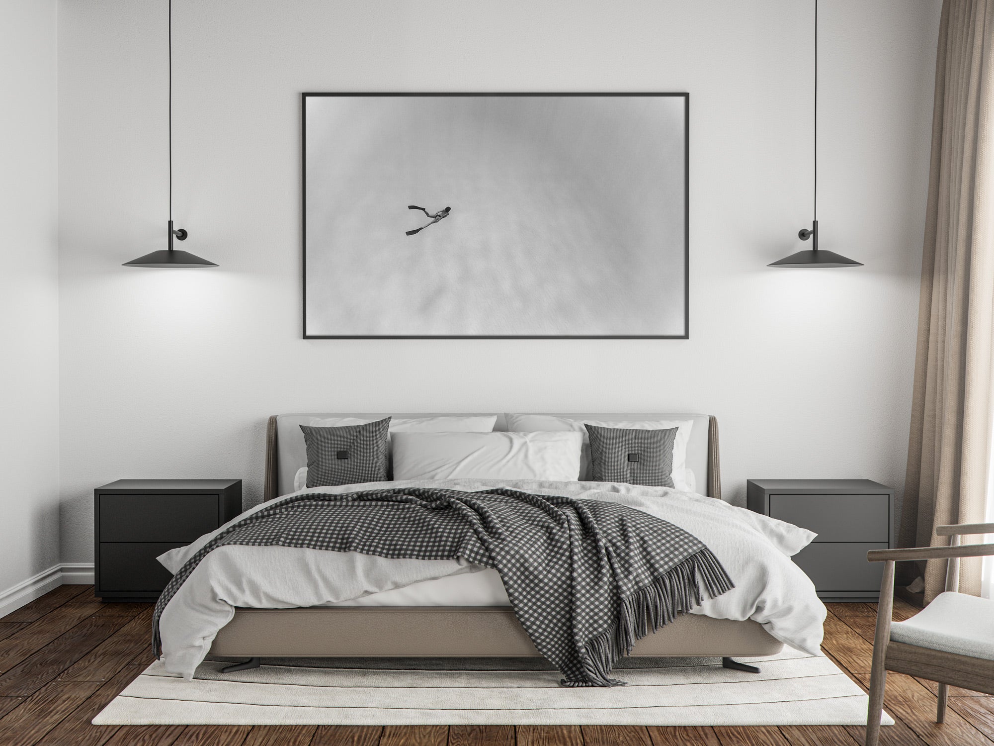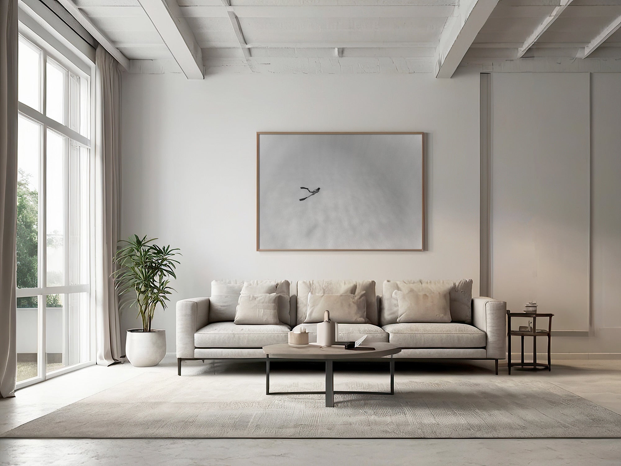 Aluminio negro, madera de roble y sin marco