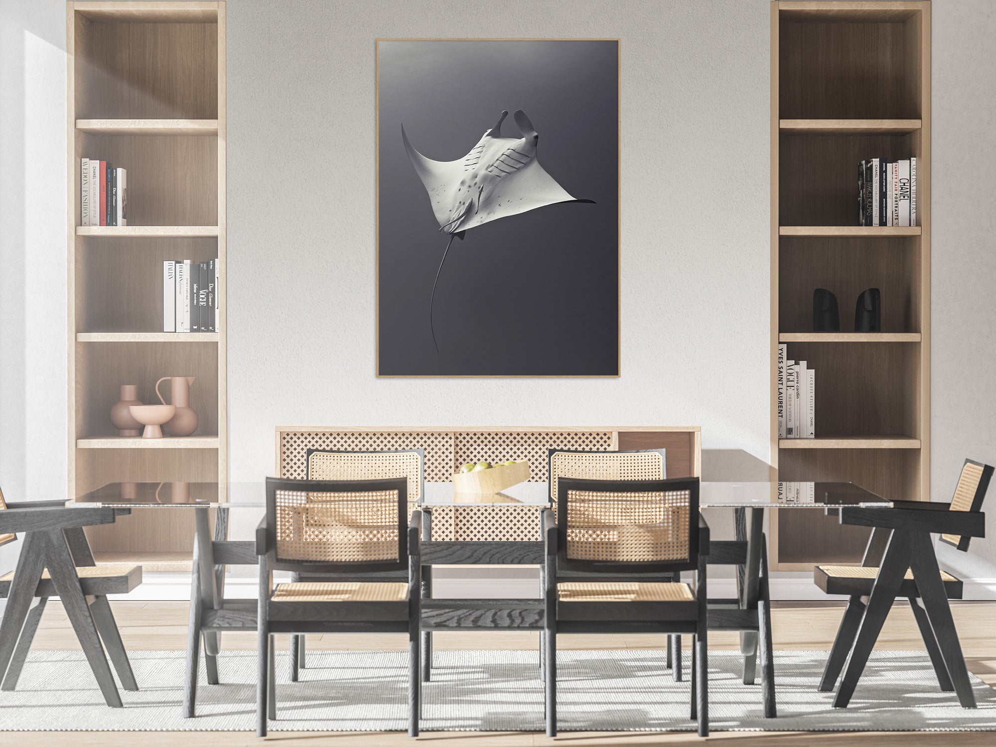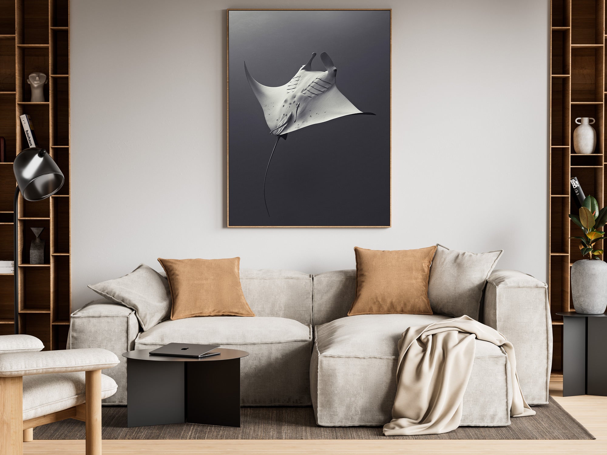 Black Aluminum, Oak Wook & Unframed