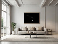 A majestic manta ray glides effortlessly through the dark, mysterious waters, its elegant form barely illuminated by a faint light that traces its smooth, curved lines. The creature’s wings stretch out gracefully, creating a silhouette that exudes both power and tranquility, as if it were a shadow dancing through the depths. The deep black background enhances the ethereal quality of the image, drawing the eye to the manta ray's delicate, flowing movement. Taken during a freedive in the Red Sea, this image captures the awe-inspiring beauty and peaceful solitude of underwater life, showcasing the manta ray as a gentle giant, moving in harmony with the silent, infinite darkness of the ocean.