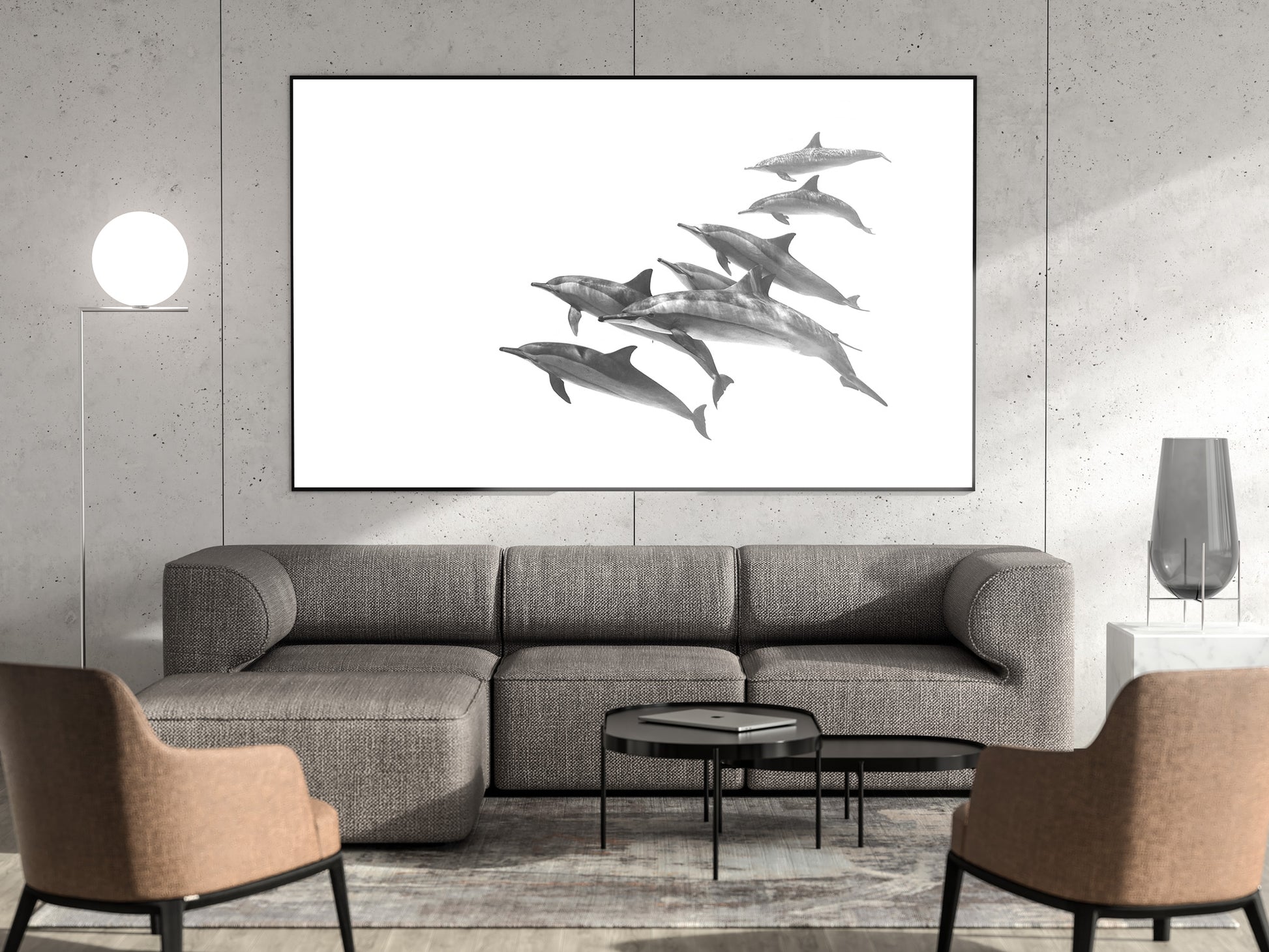 Beneath the warm waters of the Red Sea, a group of spinner dolphins moves in perfect harmony, gliding gracefully in a natural dance known only to the ocean. These dolphins, with their agile bodies and vibrant energy, seem to paint a marine ballet as they interact with the world around them.