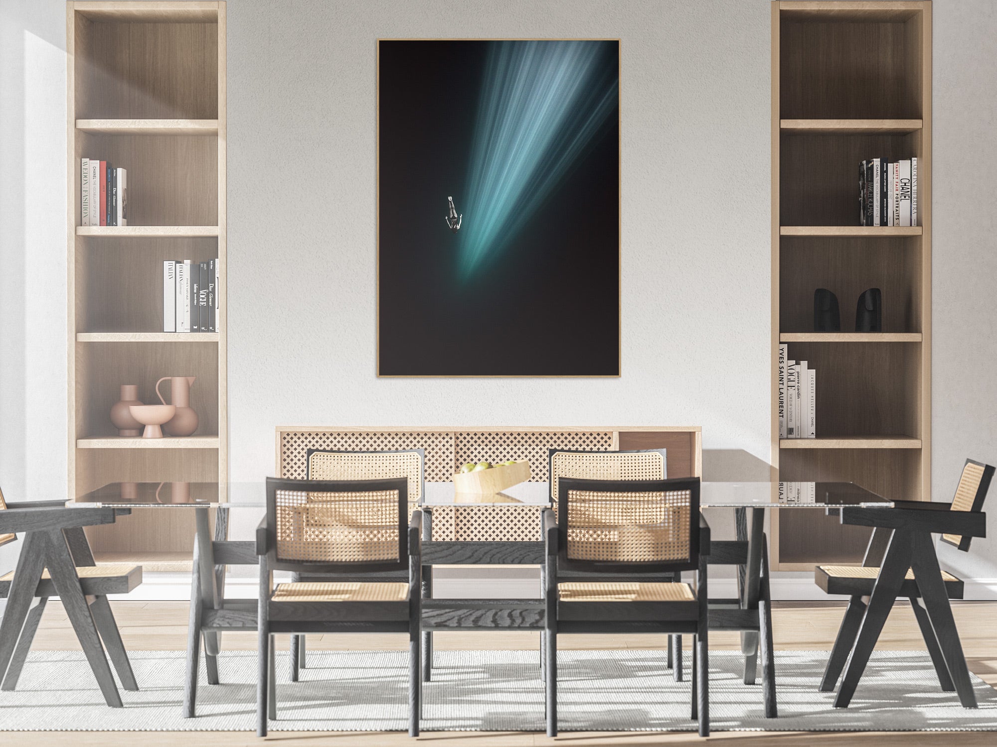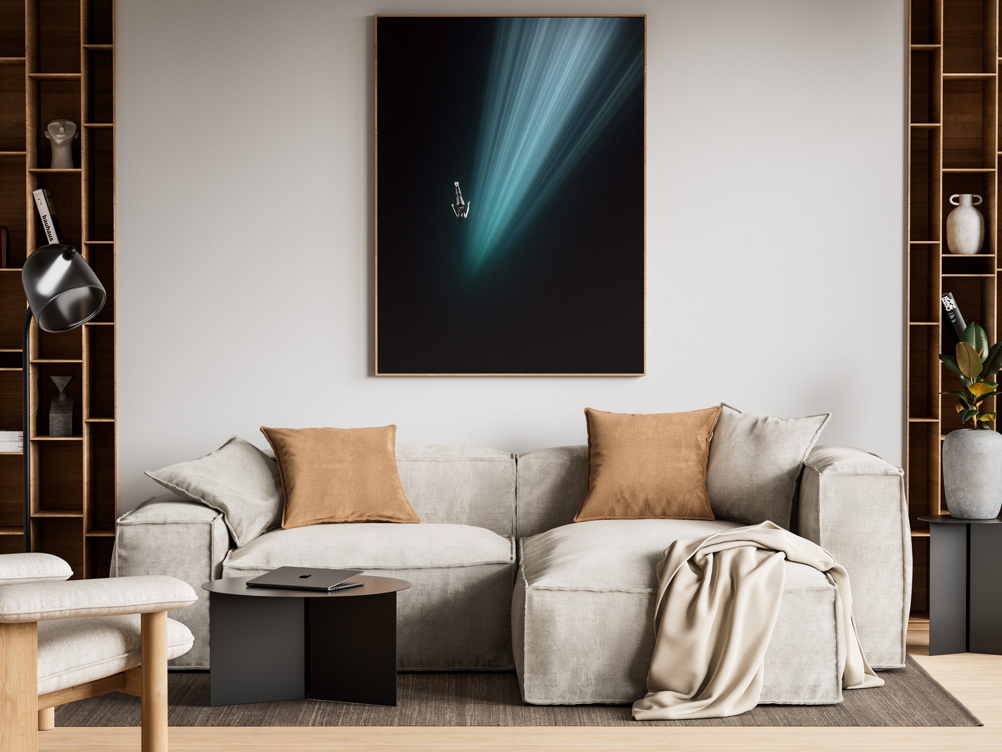Black Aluminum, Oak Wook & Unframed