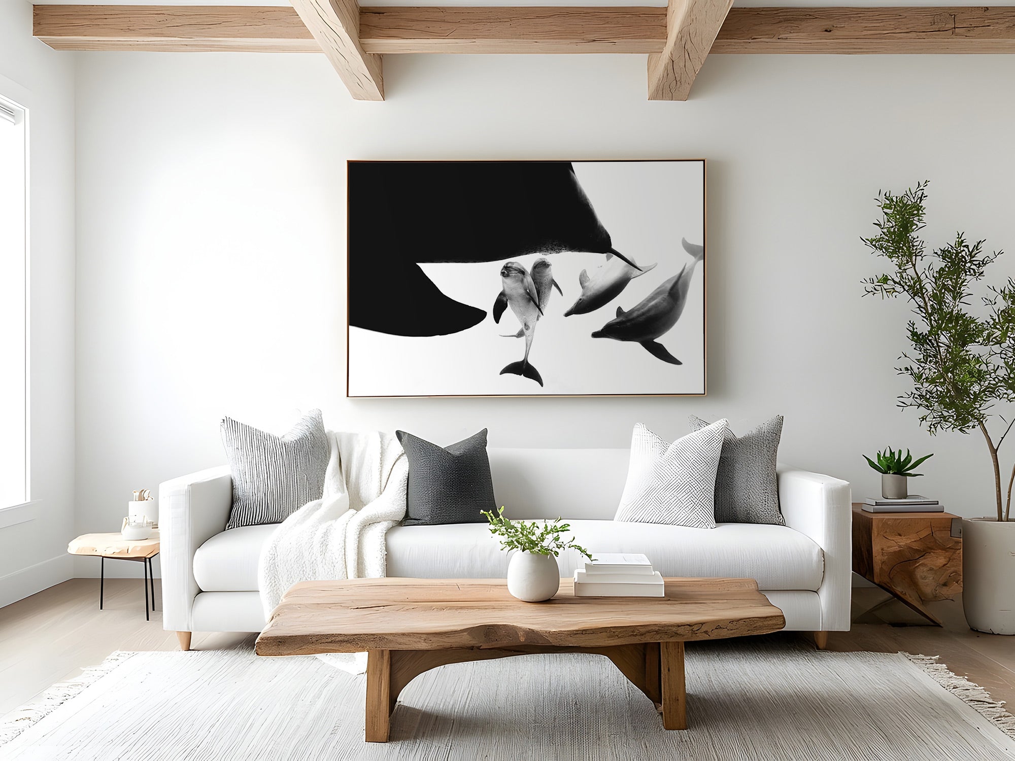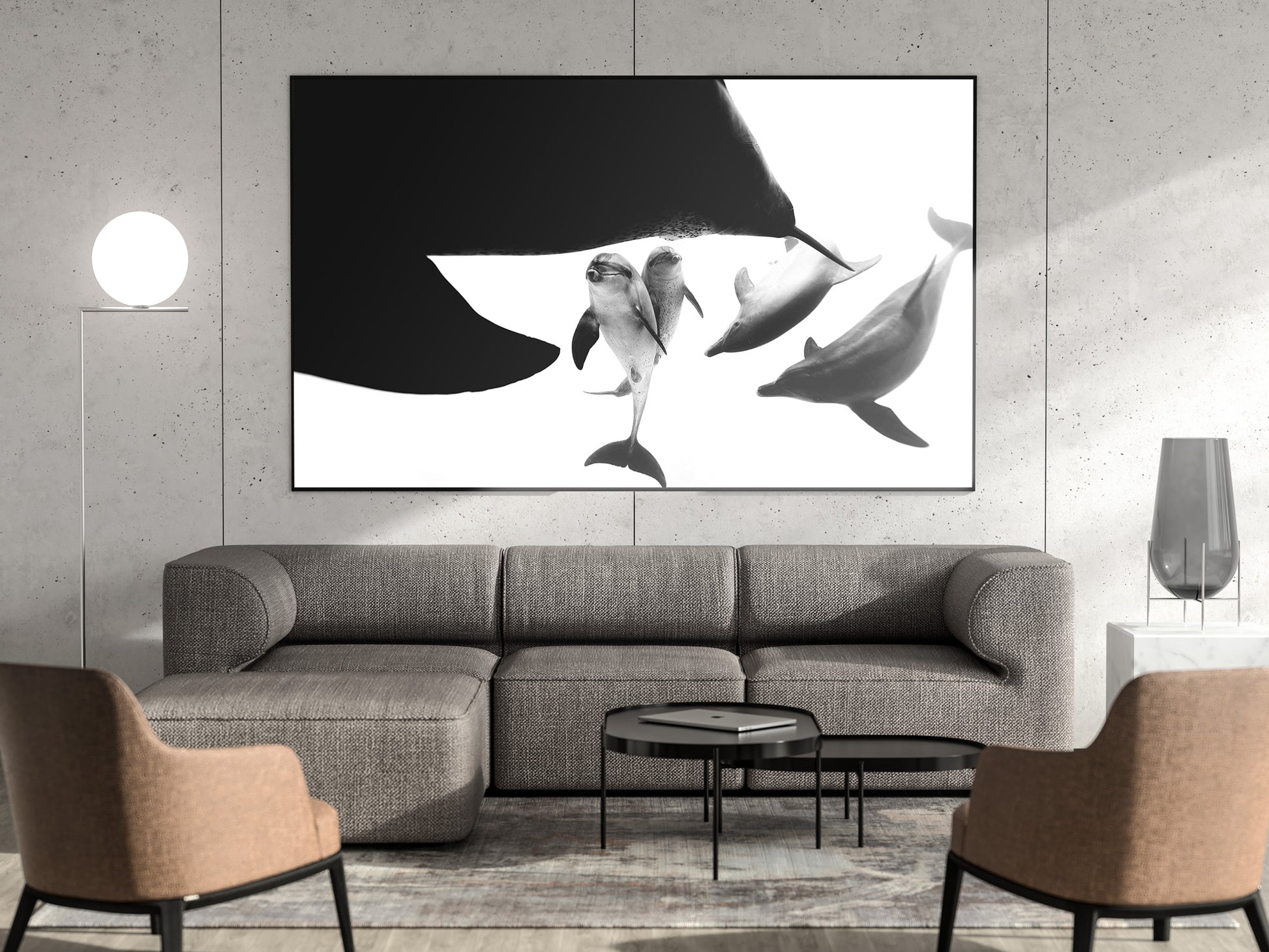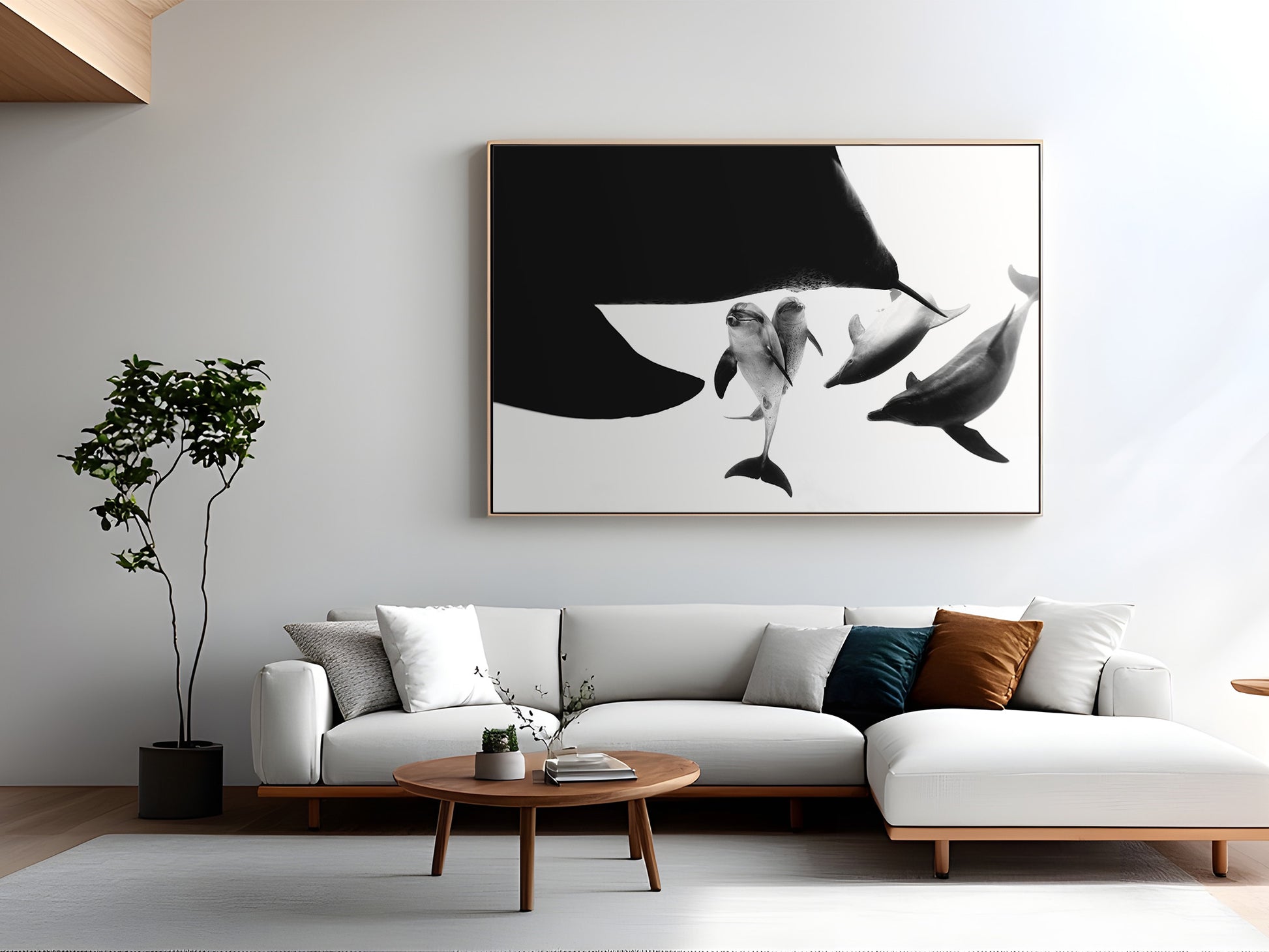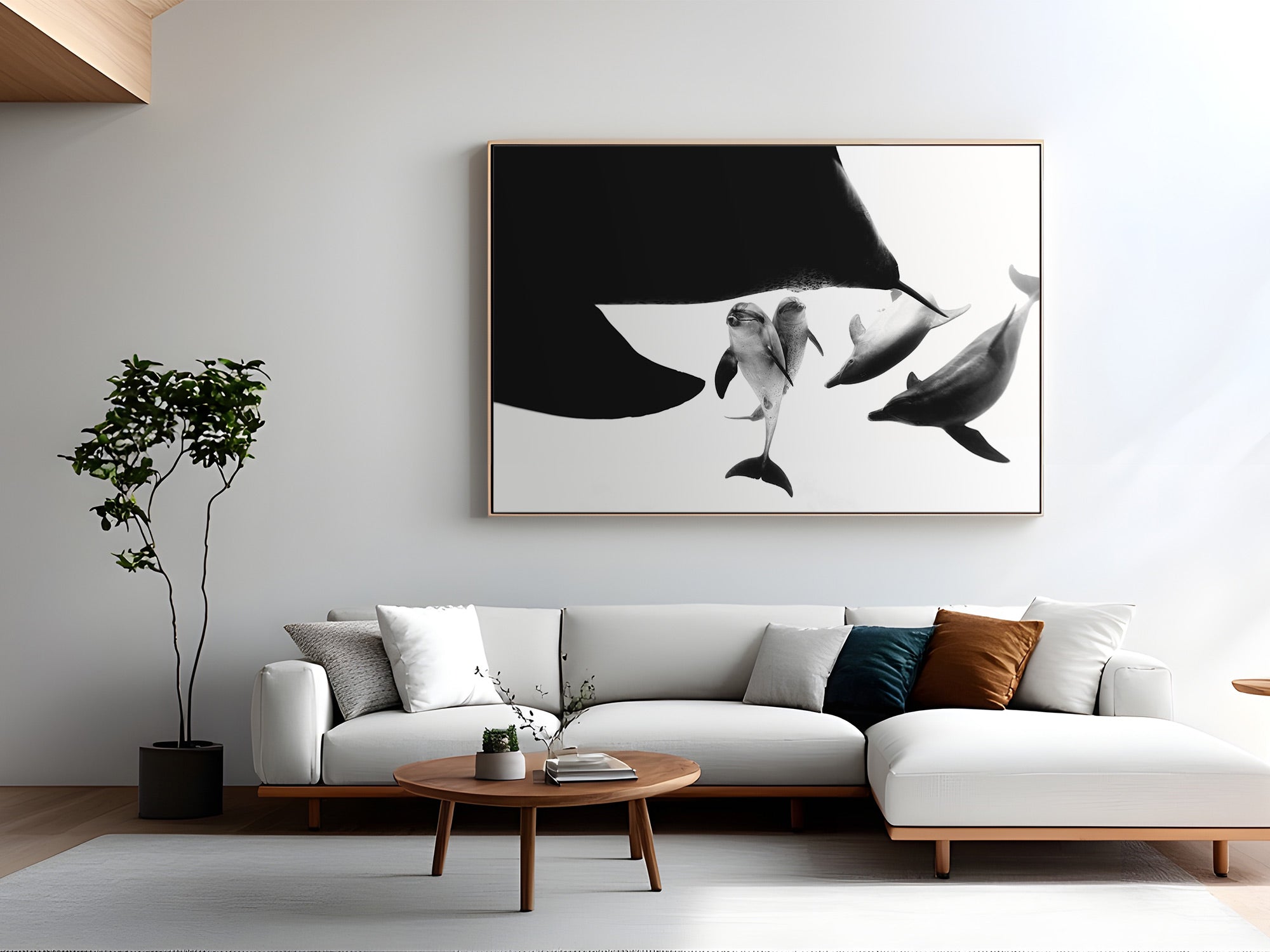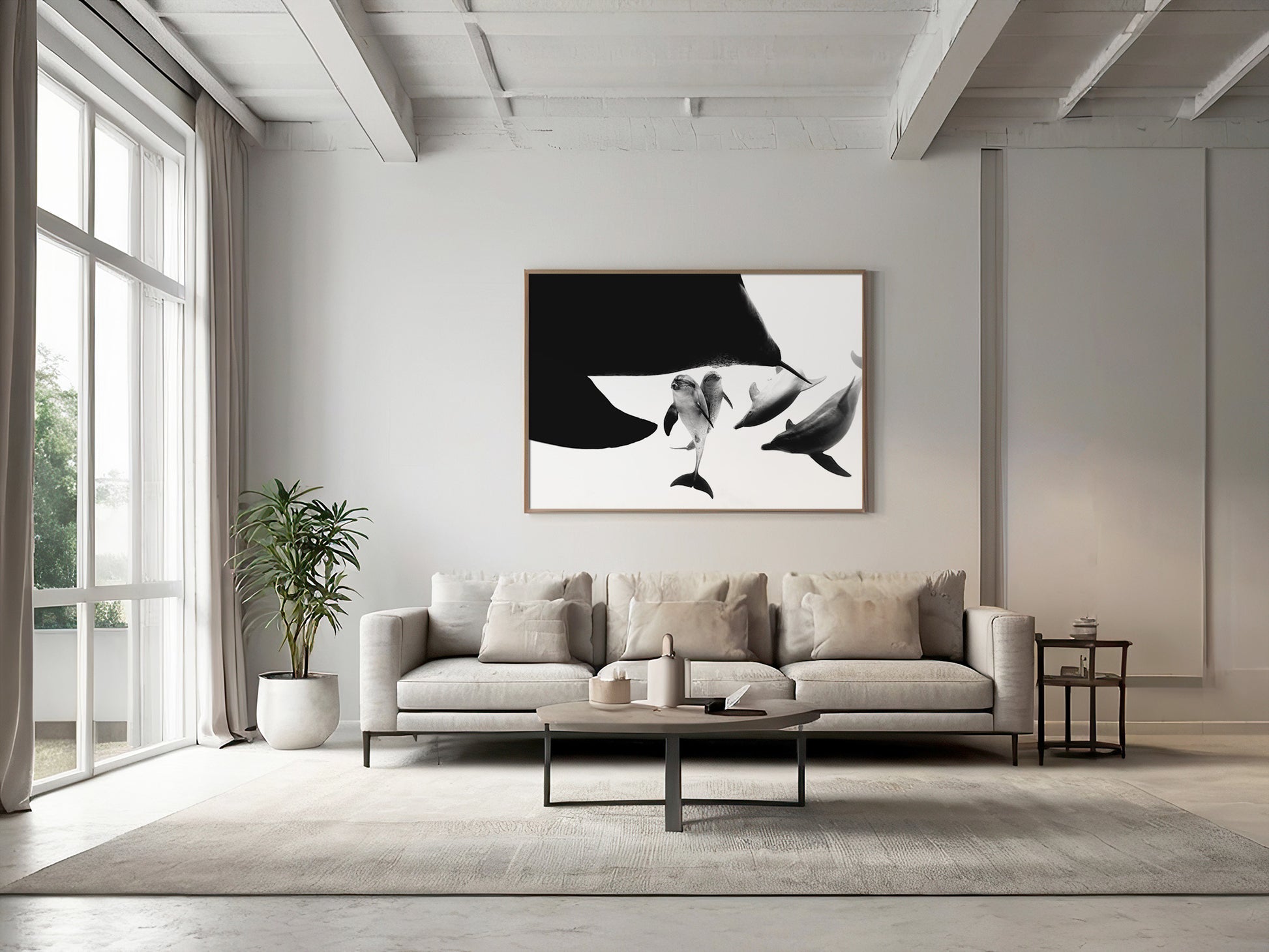 This striking composition captures a moment of both power and intimacy—where the ocean becomes a stage for the eternal cycle of life. A perfect piece for collectors drawn to the beauty of marine wildlife and the untamed rhythm of nature.