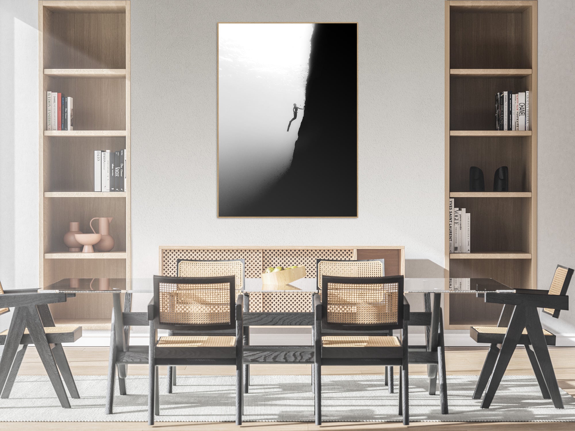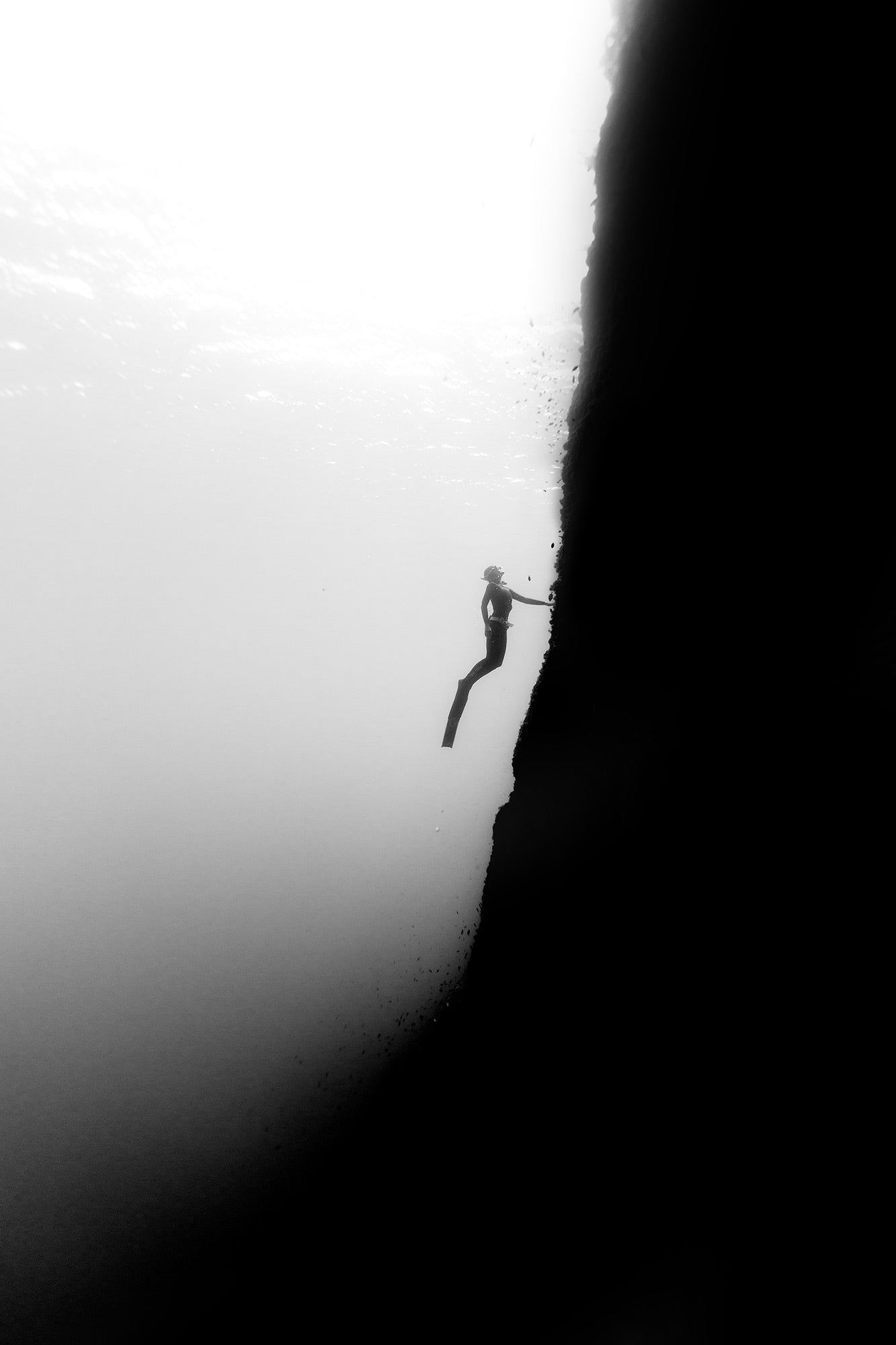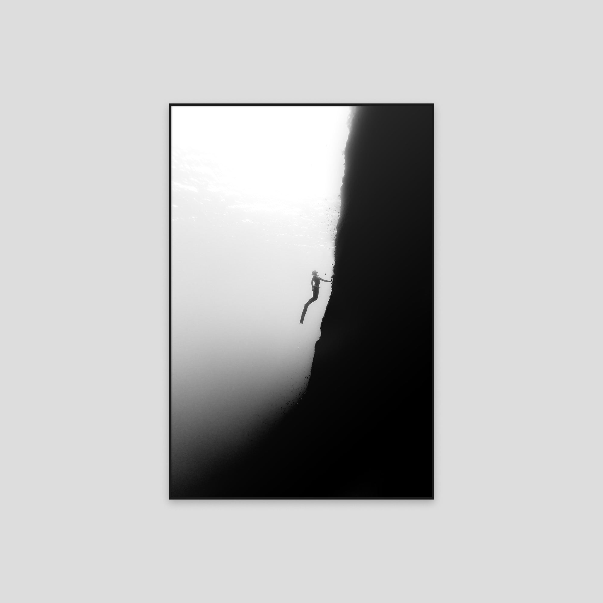 Experience the convergence of terrestrial drama and aquatic exploration through this expertly documented freediving expedition along Menorca's cliffsides. This piece captures the thrilling transition from dramatic coastal geology to Mediterranean depths, showcasing the technical skill and courage required to navigate these challenging underwater environments. The composition reflects the island's unique topography where sheer rock formations plunge into crystalline waters, creating exceptional conditions for advanced apnea exploration. Perfect for experienced freedivers and those who appreciate the intersection of geological grandeur and underwater mastery, this product celebrates the pinnacle of Mediterranean diving adventure and personal achievement.