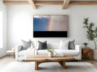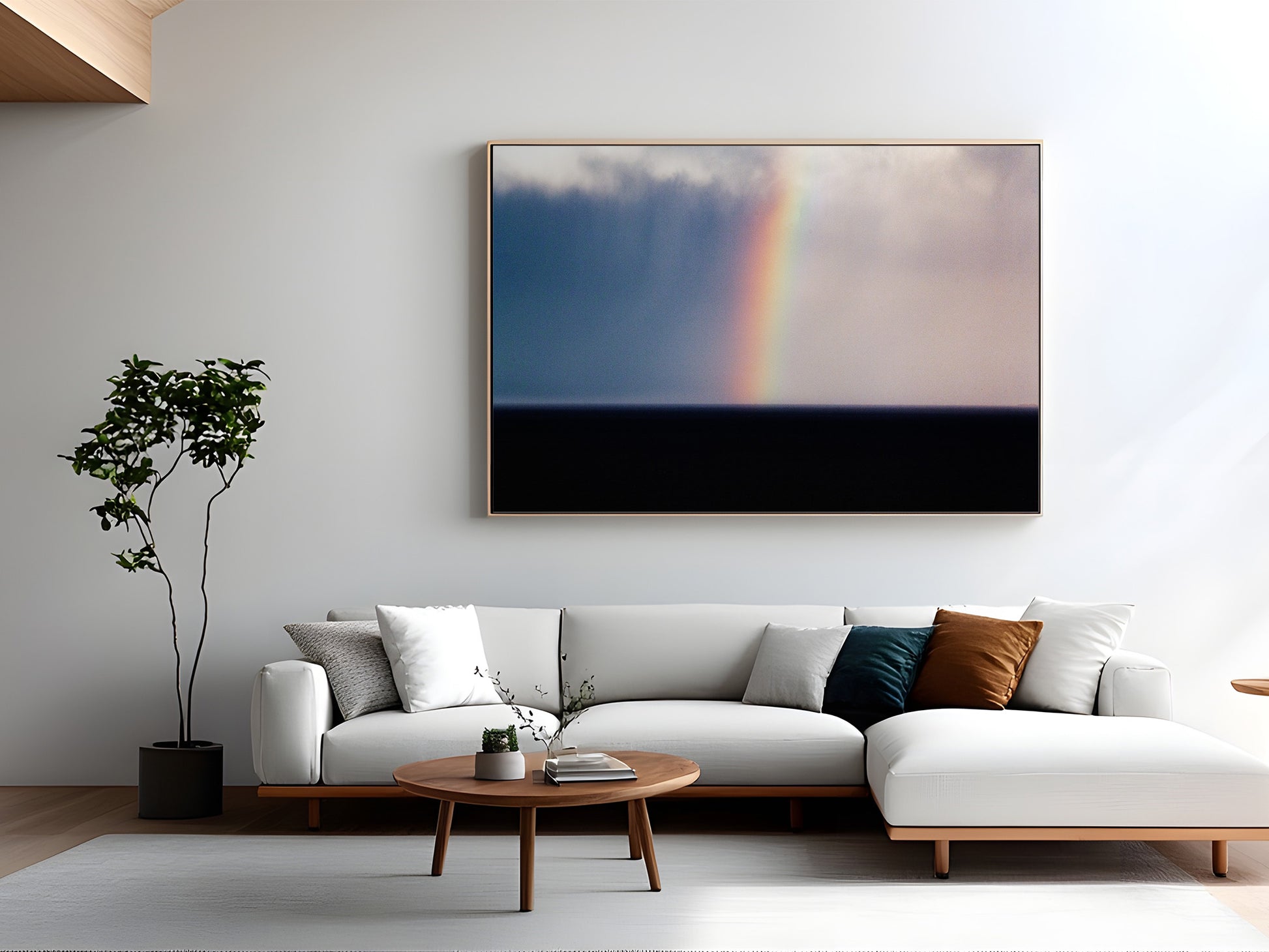 Witness the rare atmospheric phenomenon of a rainbow arcing across Mediterranean horizons through this expertly captured meteorological moment. This piece documents the optical interplay of light refraction and moisture suspension that creates these ephemeral spectacles above the sea. The composition demonstrates sophisticated understanding of atmospheric conditions and chromatic physics, capturing the transient beauty that emerges when weather patterns align with solar geometry. Ideal for those who appreciate meteorological phenomena and the poetic intersection of science and natural beauty, this product brings a sense of wonder and atmospheric authenticity to collections celebrating Mediterranean coastal majesty.