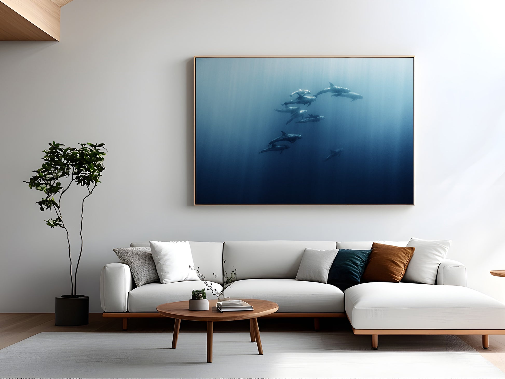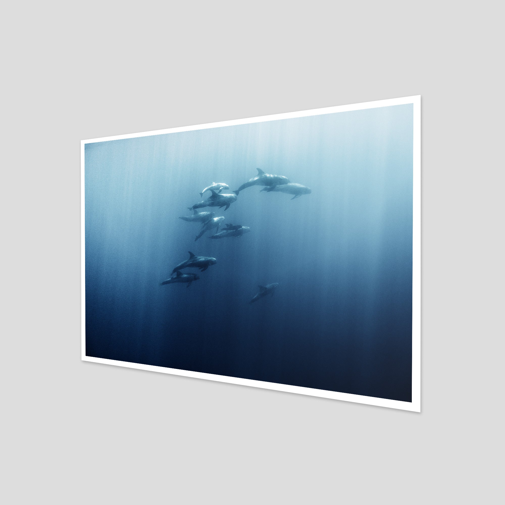 Discover the remarkable marine mammals of Mediterranean pelagic zones through this expertly documented study of Risso's dolphins. This piece captures the distinctive characteristics and behavioral patterns of these deep-diving cetaceans, celebrated for their intelligence and sophisticated social structures. The composition reflects an informed appreciation for Mediterranean marine mammalogy and the ecological significance of these apex predators within open-water ecosystems. Perfect for marine biologists, cetacean enthusiasts, and those who value the biodiversity and conservation importance of Mediterranean waters, this product brings scientific authority and wildlife reverence to your collection.