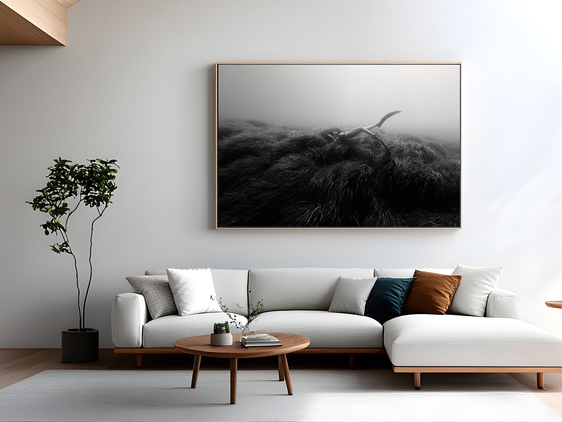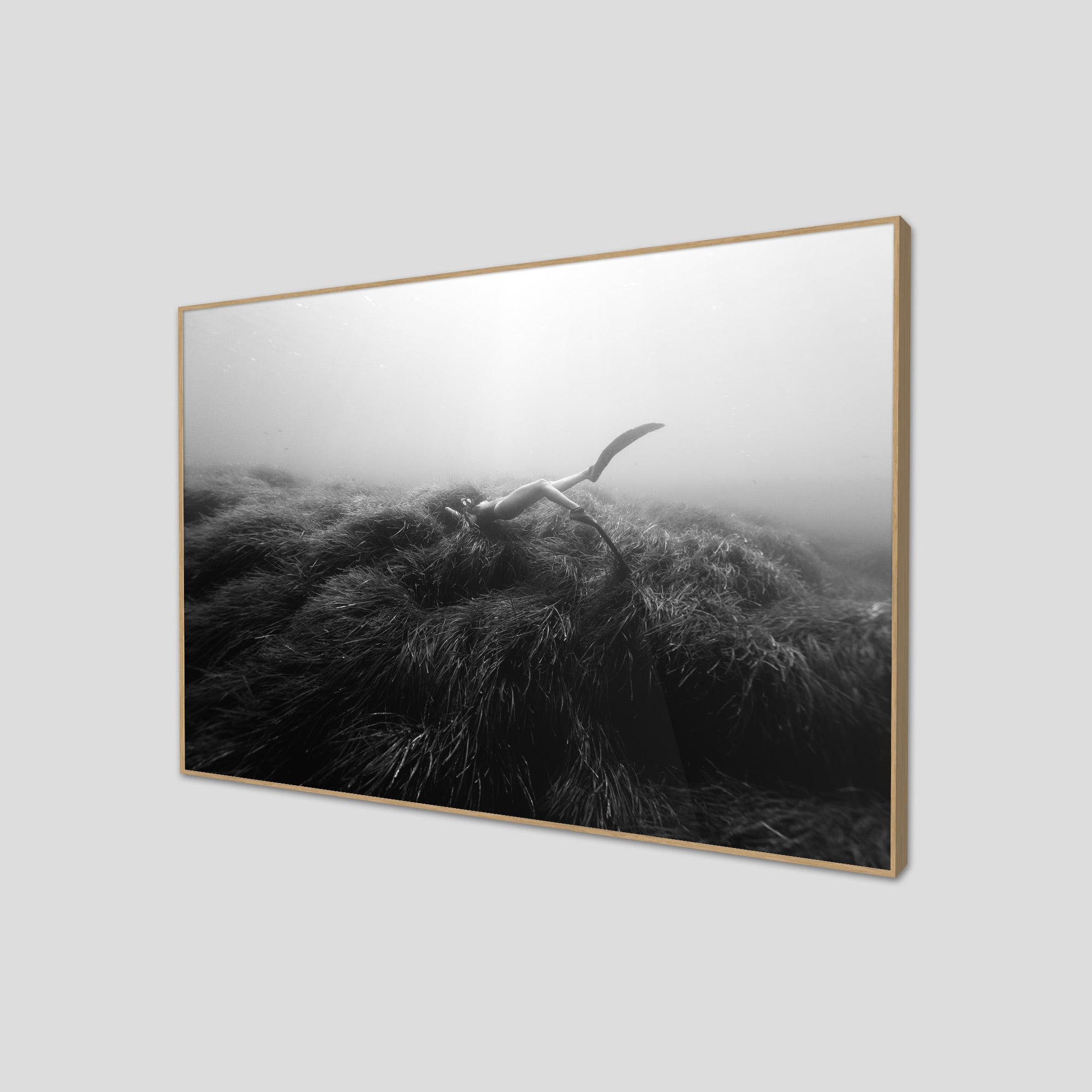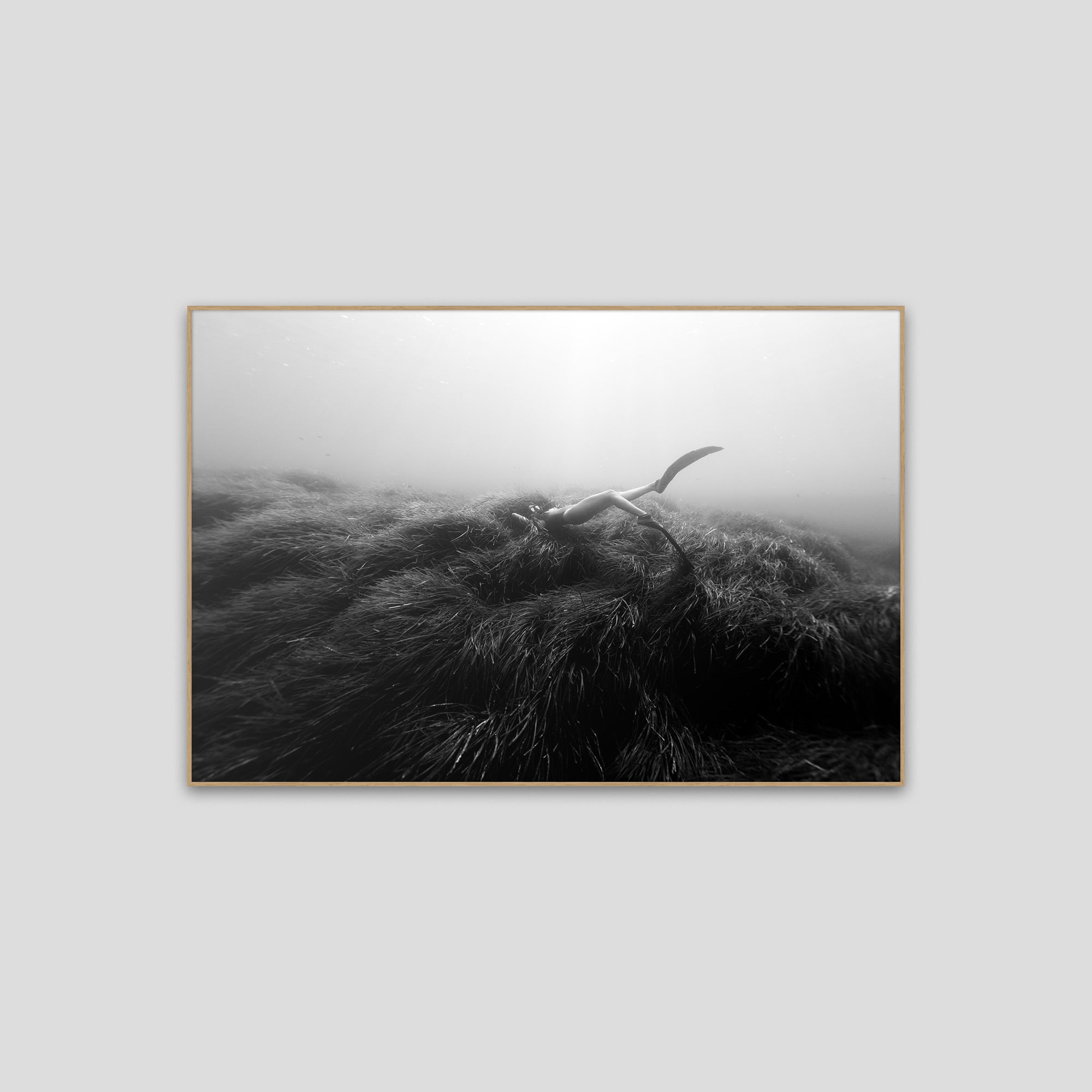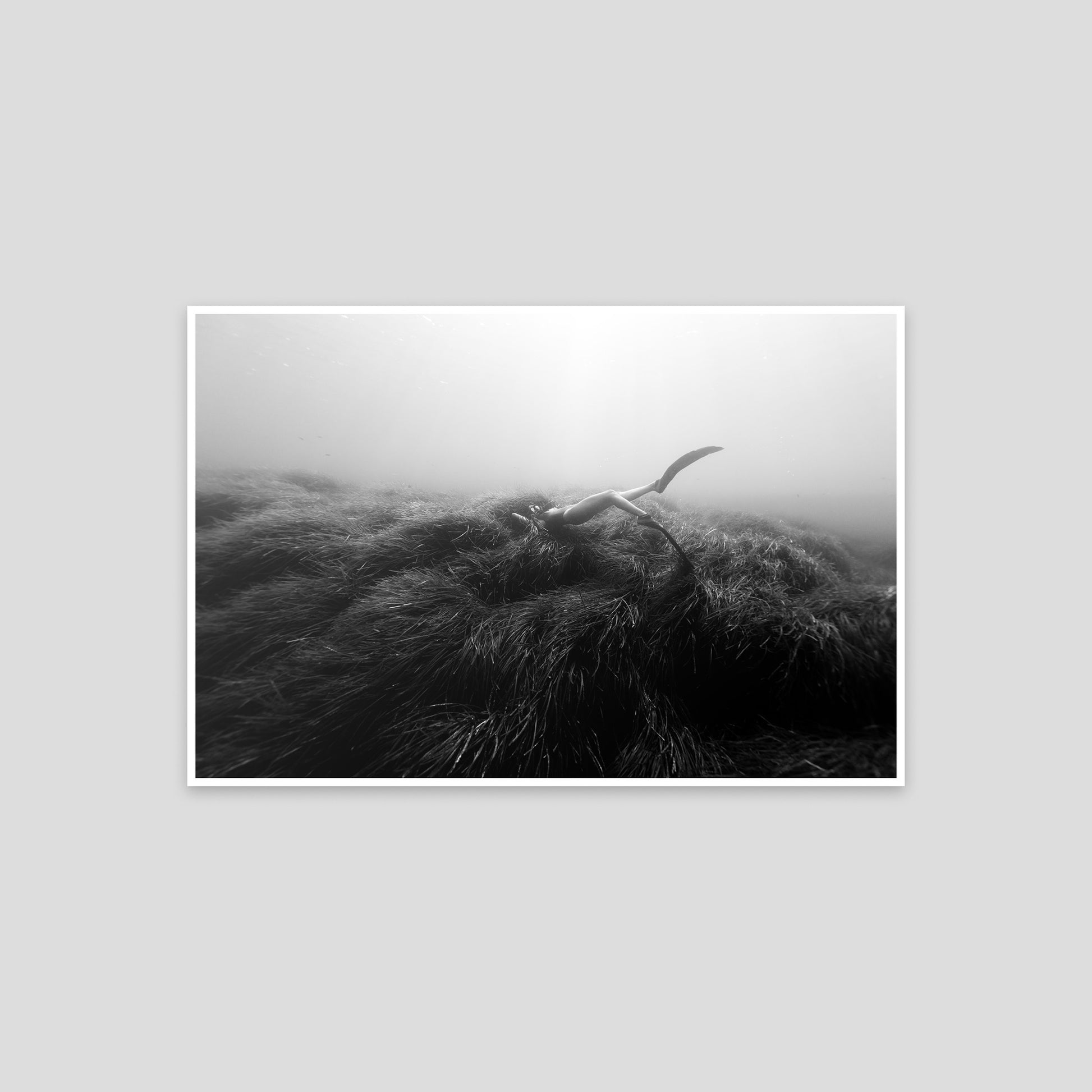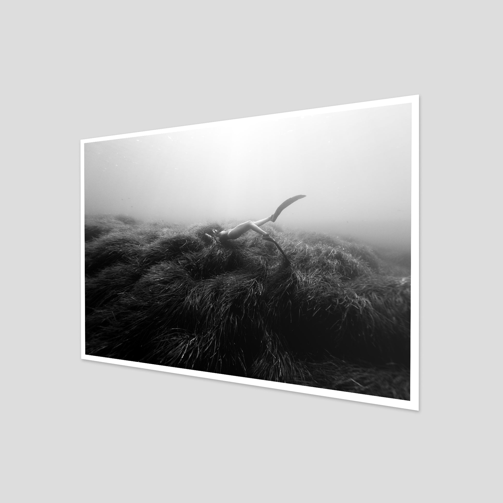 Underwater documentation capturing a freediver engaged with Mediterranean Posidonia oceanica meadows, illustrating the interplay between human aquatic exploration and seagrass ecosystems. This image exemplifies the recreational and scientific dimensions of freediving within biodiverse coastal habitats. The specimen showcases the structural complexity of Posidonia beds and their ecological importance as nurseries for Mediterranean marine fauna. Valuable for marine education, conservation advocacy, and understanding sustainable interaction with vulnerable seagrass environments. A compelling visual reference for those studying Mediterranean biodiversity and apnea-based marine observation techniques.