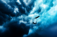 Subaquatic documentation from Menorca's northern littoral zone, capturing the dynamic interplay between wave dynamics and submarine topography along the island's cliff formations. This specimen illustrates the hydrographic conditions characteristic of the Balearic archipelago's exposed northern shores, where Mediterranean swells interact with dramatic geological structures. The freediving perspective provides intimate documentation of the underwater landscape, revealing the complex bathymetry and ecological zonation typical of Mediterranean cliff ecosystems. Valuable for marine geomorphology study, coastal hydrodynamics research, and understanding the environmental conditions that shape Menorca's distinctive submarine geography. An essential reference for those investigating Mediterranean island geology and apnea-based marine surveying methodologies.